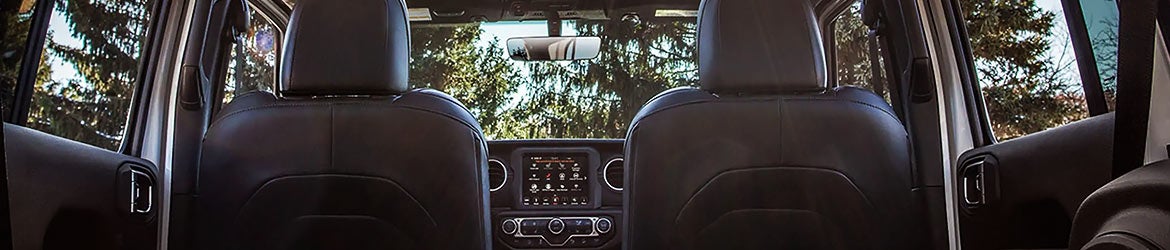 The 2023 Wrangler is available as a four- or five-seater SUV with plenty of room to relax and enjoy the ride. Depending on your trim, you'll also enjoy cloth, vinyl, or leather seating surfaces. Across the lineup, you'll find amenities such as a heated steering wheel, heated front seats, and all-weather floor mats. The smartphone-compatible infotainment system lets you stream your favorite music, get traffic information, and send hands-free texts.